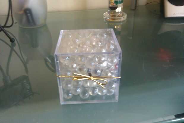 Para sujetar las dos piezas cerradas, usted puede pegarlos juntos. Elijo no por lo que fácilmente puedo cambiar la batería cuando es necesario. Puede usar lo que te gusta asegurarlos, pero elegí una cadena decorativa elástico que tenía alrededor. Bien, esto mantiene el cubo entero en su lugar y hace que se vea como un pequeño regalo.