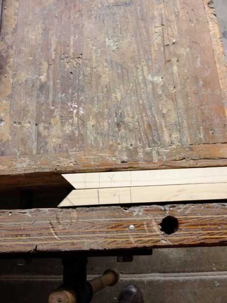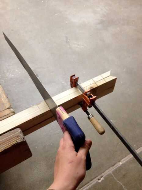 Sujetar los tableros juntos y vimos a lo largo de las líneas verticales hasta llegar a la línea de profundidad.