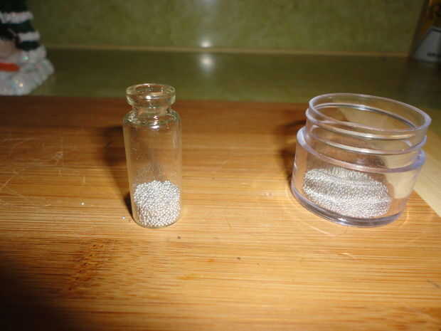 Vierta fuera dos botellas de granos en envases separados. Los que nos interesa son los plata, y se ser dividirlos en los dos lados del interruptor de inclinación.