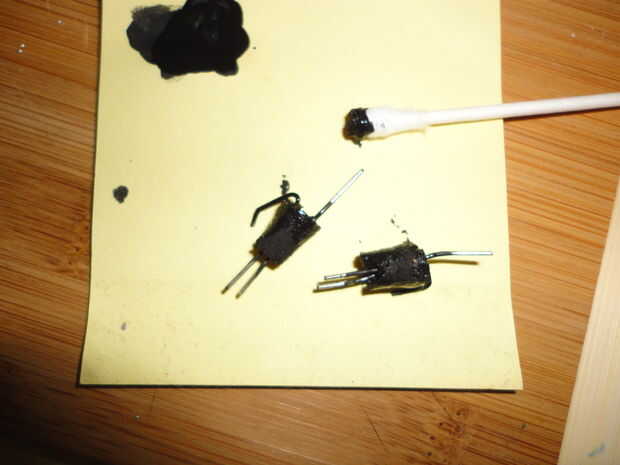 Una vez que la pintura esté seca, seguir adelante y de la soldadura de algunos conduce a uno de los contactos de cada interruptor.