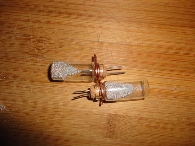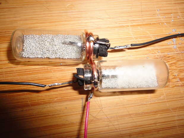 En este punto tienes dos interruptores de inclinación, podría detener aquí y utilizarlos tal y como se utiliza un interruptor de mercurio. Quería que ser bidireccional de modo que les até juntos.