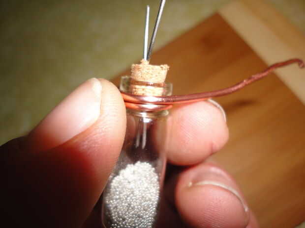 Use el cable de cobre (el calibre más grueso) y envuelva alrededor de uno de los cuellos de botella con una vuelta y media. La ranura acepta el cable perfectamente y llegar ajustado fue fácil.