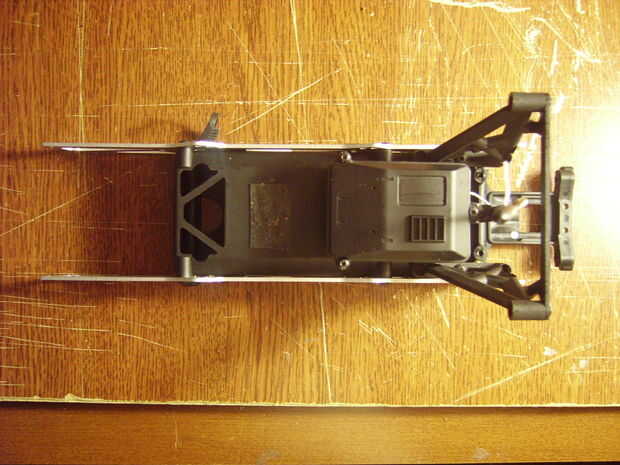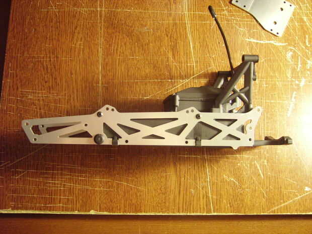 Después del desmontaje de motor y transmisión, aquí el chasis de aluminio vacías para iniciar la Asamblea del vehículo RC modelo basculante nuevo.
