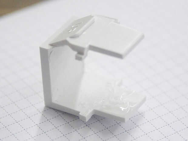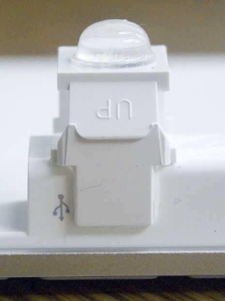 Antes de que se pegue nada, apenas Deslice un insertar en blanco sobre la cresta en la parte inferior de la KB. Ajuste perfecto! Casi como que fueron diseñados para este fin! Este paso no es más que aplicar el pegamento estupendo a las dos superficies de las inserciones en blanco que entran en contacto con la cresta en la KB, luego colocar en dicho canto y dejando la cosa solo durante cinco minutos. Asegúrese de bajar los insertos completamente hasta que las pestañas poco pequeños entran en contacto con el canto, para que ambos tendrán la misma altura. De lo contrario su KB oscilarán de una manera realmente irritante mientras escribe. Me gusta squirt pila un poco del gel en un poco de papel, a continuación, utilice un clip o un palillo de dientes para aplicar el pegamento. Si te gusta solo aplique el pegamento en el inserto, no estoy aquí para juzgar. En cuanto a posicionamiento, pongo minas cerca de los extremos de la cumbrera para máxima estabilidad. Este posicionamiento no es realmente crítico, sólo asegúrese de que no son demasiado lejos hacia fuera para que los puertos USB no impedidos.