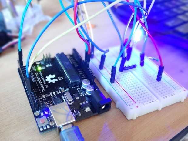 Nota: en la mayoría de Arduinos hay ya un LED en el tablero atado pin 13.