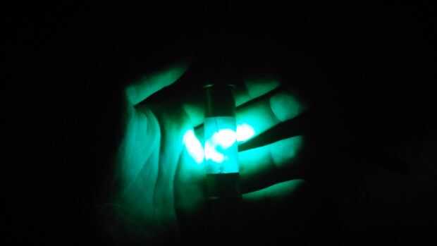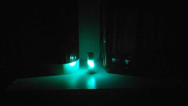 Esto es lo que parece! Al voltearla, se enciende y emite una suave luz verde. Perfecto para una luz de noche!