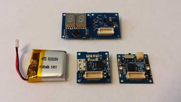 Un procesador de TinyDuino usando una pila de monedas serían suficiente para este proyecto. En este ejemplo a 3, 3V batería fue utilizada con un conector macho JST SH 2.