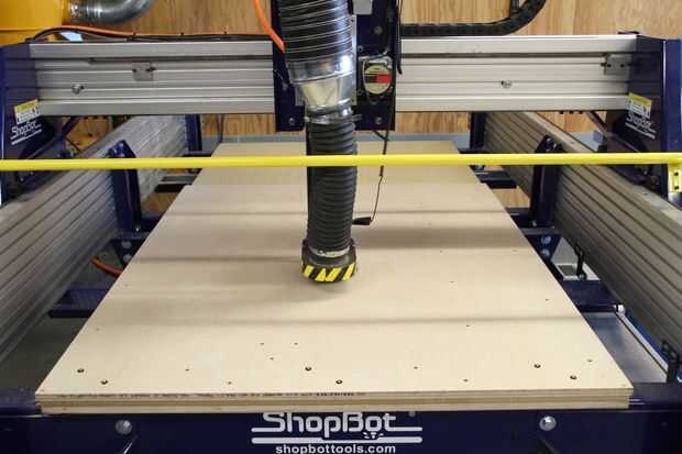 Aquí en el muelle 9, tenemos el lujo de tener acceso a un número de herramientas de corte de Perfil de gran formato, incluyendo un chorro de agua Omax, coherente láser de MetaBeam y Shopbot CNC Router. Para los efectos de la porción de madera de este proyecto, opté por usar el Shopbot por las siguientes razones:
