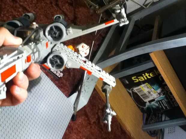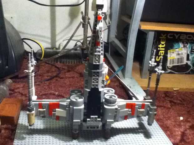 Ornitóptero: (n) una máquina diseñada para alcanzar el vuelo con aleteo de las alas.Esta instrucción mostrará cómo un ornitóptero que representa la lucha entre una X-Wing y un TIE Fighter de la moda. Como veis en la foto, las dos naves se construyen