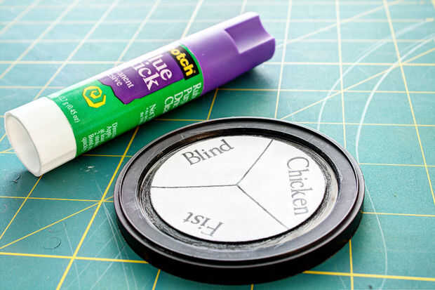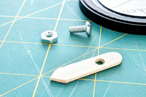 Taladre un agujero en un palito blanco ligeramente más grande que el tornillo y cortar algo con tijeras.
