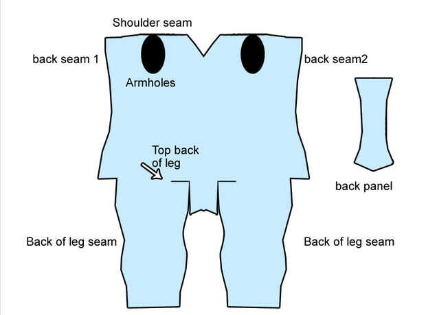 Uno es lo que utilicé para Midna - hay un panel del centro de la espalda porque este fue mi primer intento en un traje de cuerpo y no estaba segura de cómo trabajarían las curvas a lo largo de las caderas si hacía una sola costura central. El panel trasero estrecho es invisible debido a la capa que llevo con el personaje. Esto tiene un escote en v.