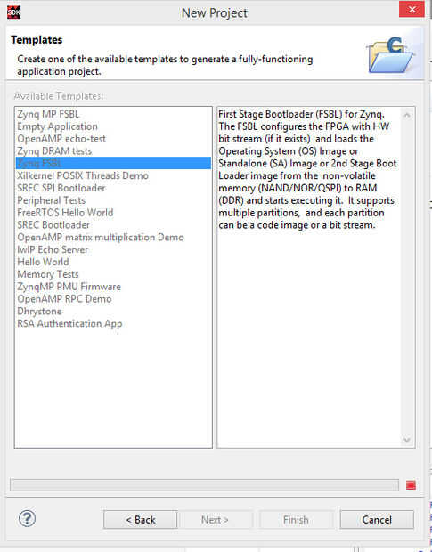 Esta modificación configura el PHY de Ethernet del dispositivo. En el dispositivo de Linux he usado ./scripts/dtc/dtc-I dts - O dtb -o .dtb .dts comando que creó el archivo system.dtb. FSBL para el árbol del dispositivo: he creado un nuevo proyecto de aplicación de archivo/nuevo. Seleccione Zynq FSBL como plantilla y construir el proyecto.