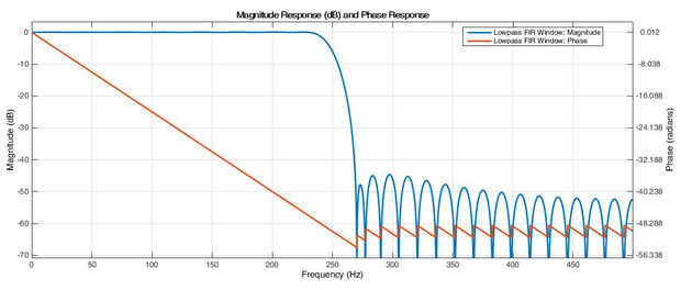 El filtro de paso bajo utilizado fue un 64thorder Taylor ventana abeto filtro con frecuencia de 1kHz de muestreo.