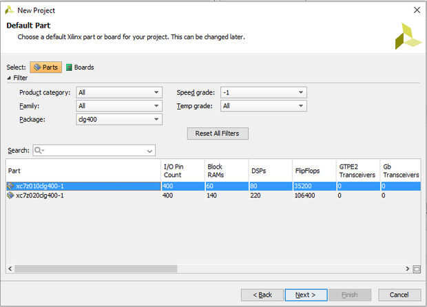 - Se crea un nuevo diseño con el hardware presente en el tablero (XC7Z010CLG400-1).