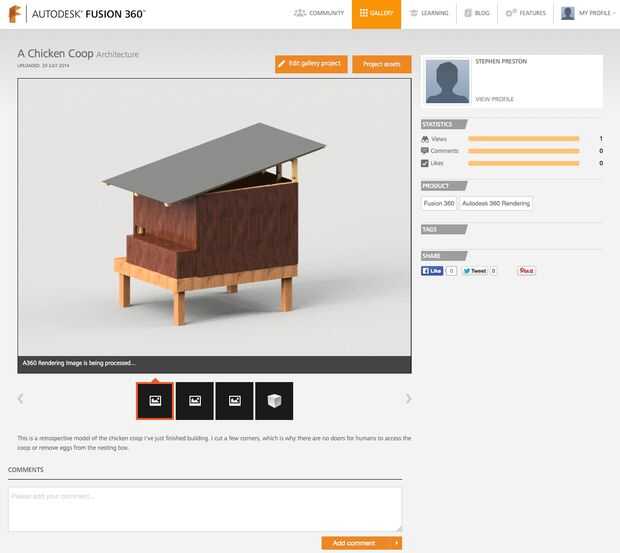 Abra su proyecto de galería y usted debería ver las representaciones seleccionadas para mostrar. Si usted recuerda hacer clic en la casilla de verificación para incluir un modelo en 3D, también verá una miniatura con una caja de plata en la esquina inferior derecha. Este es el modelo 3D.