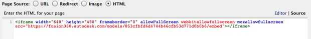Por último, pegar ese código en el editor de HTML de la ficha personalizada. Tengo solo pasteg un iframe para este demo. Si estás mostrando sus diseños, usted podrá probablemente añadiendo varios modelos integrados en la misma página y también agregar texto adicional y otros elementos para contar una historia a tus amigos.