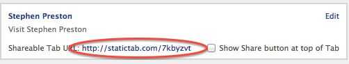 Un enlace a esta ficha se muestra en la parte superior de su página de Facebook personalizado.