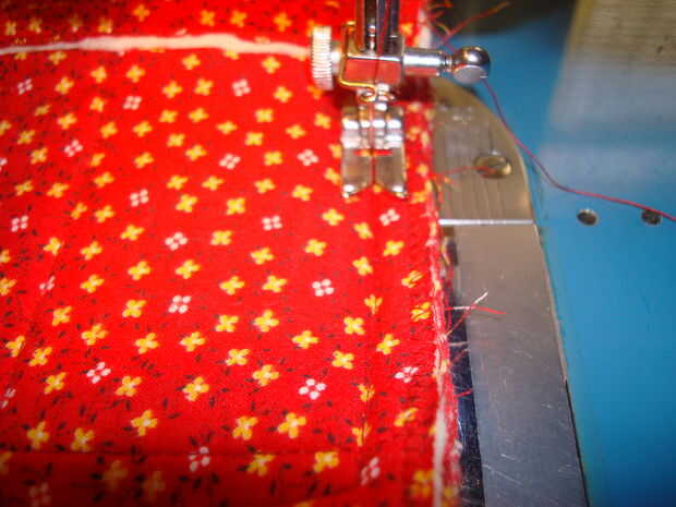 PIN y coser todo alrededor del exterior de la bolsa con una puntada normal con un margen de costura de 1/2".
