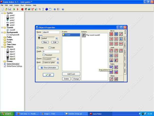5 Haga clic en la pestaña main1 en el lado y busque jugar un comando sonido.