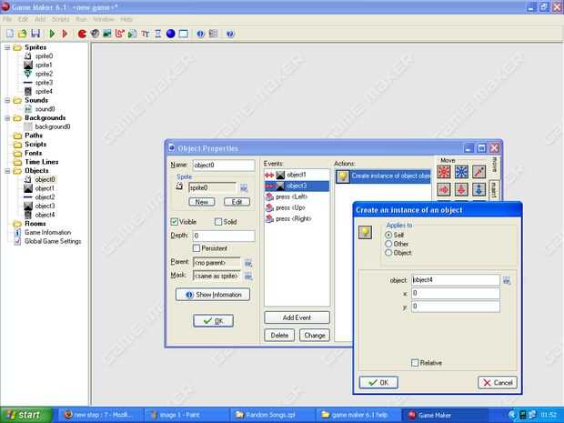 Haga clic en agregar un objeto y selecciona el sprite de diamante, añadir evento eligió crear y haga clic en la pestaña de sorteo en el menú lateral.