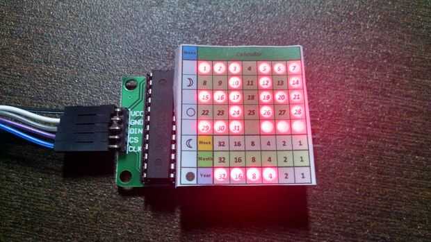 El concepto principal es aplicar en una simple pantalla de matriz de LED muchas características incluyendo un completo calendario mensual con el día, mes, año, número de la semana y la fase de la luna!!!!
