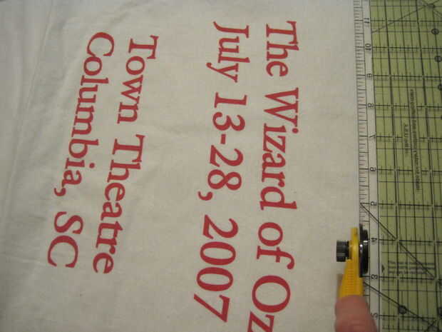 Ahora que sabes donde van las camisetas, hacen en los rectángulos de tamaño apropiados usando el cortador rotatorio y acolchar la regla.