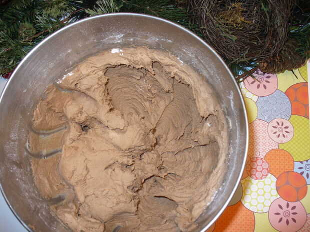 1. en un tazón grande mezclar la mantequilla, el azúcar y el queso crema en medio hasta la luz y mullidas. Mezclar la sal, la vainilla y la yema de huevo hasta que estén bien mezclados.  Batir la harina y el cacao en polvo en un recipiente separado, entonces añadir a la mezcla de mantequilla/azúcar.  La masa estará muy suave y pegajoso, casi como cookie masa mousse. Cubrir la masa en el recipiente con una capa de envoltura de plástico y enfriar la masa en la nevera 8 horas o toda la noche.