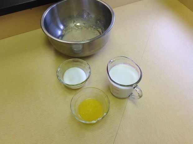 Añadir la leche, la mantequilla derretida y el azúcar a la mezcla de levadura y darle dar revuelo.