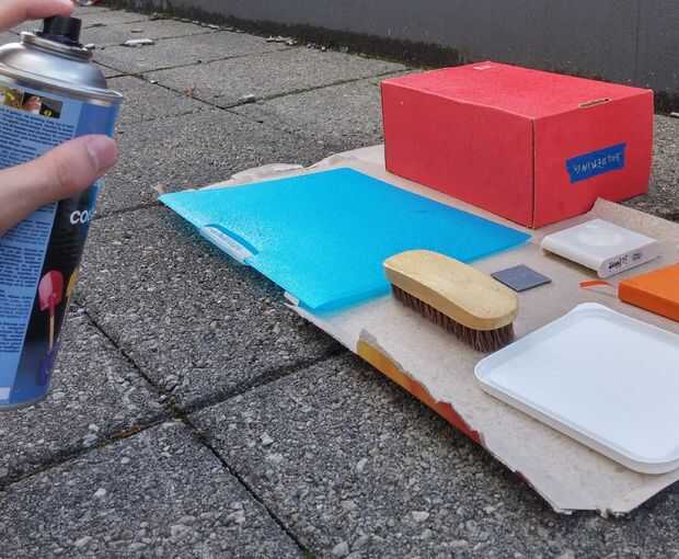Agitar la pintura buenísimos y apuntar hacia las superficies a pintar. Desea realizar el spray puede a unos 50 cm (20).