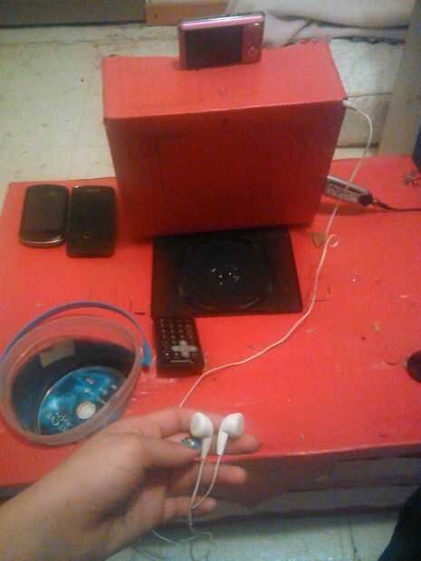 En esta parte, usted puede agregar otras cosas, en mi caso, he insertado un conector, por lo que se puede introducir en y todo el sistema funciona bien, también he añadido dispositivos más electrónicos, como teléfonos y una pegada una cámara encima de la pantalla y un poner un agujero para poner unos auriculares también.