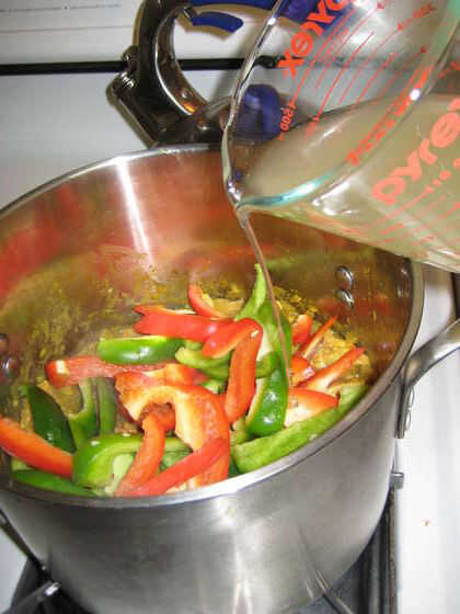 - Nota puede utilizar cualquier vegetal o combinación de verduras realmente: Papa, batata, berenjena apio (la lista continúa) etc. o una combinación. Yo uso pimientos de ese sutil dulzura, crunch y de color desde el curry es un amarillo/marrón. Para las verduras con almidón un poco más, uso un poco más de sal y caldo de pollo, tienden a ser más absorbentes.