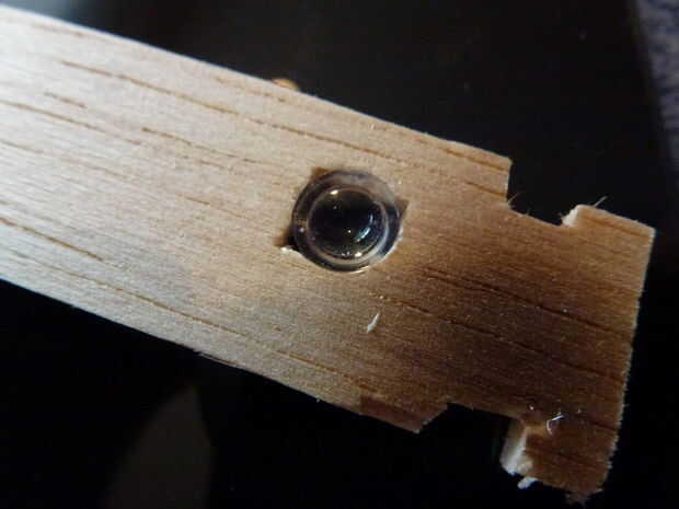 Hacer el mismo proceso para ambos lentes, teniendo cuidado de que cada uno se ajustan cómodamente con poco voladizo de bits fibrosos colgantes de madera de balsa.