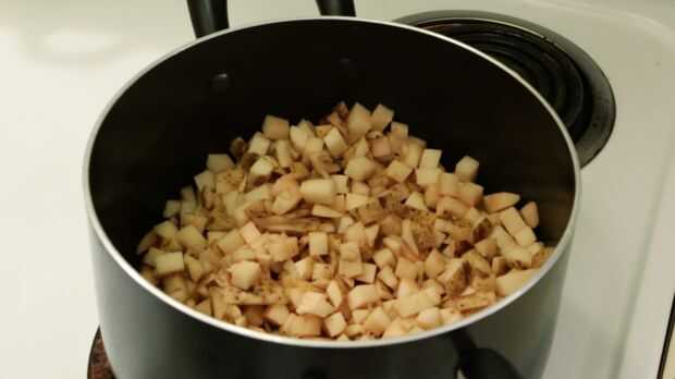 En primer lugar permite girar a nuestro fogón a medio alto a alto y en una olla grande, añadir las patatas, apio, trocitos de jamón y cebolla.