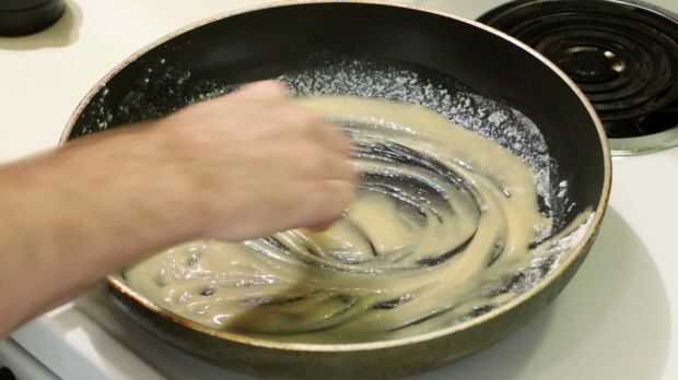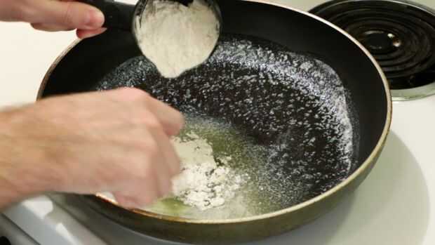 Ahora agregamos nuestra flor lentamente y mantenga revolviendo como lo agregamos. Usé un tenedor ligeramente, teniendo cuidado de no raspar la sartén, también si lo desea puede utilizar un batidor. Mantener revolviendo constantemente, esto evitará grumos grandes que se forma.
