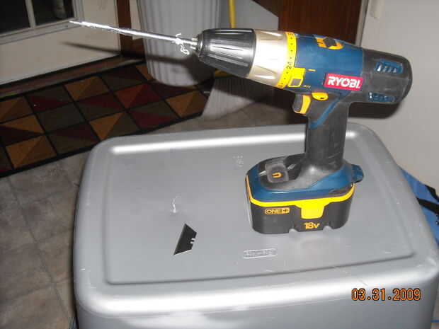 Necesita dos bolsas que son el mismo. Haz un taladro y una broca de taladro - utilicé una broca de 3/8. Y una navaja. No pude encontrar mi cuchillo por lo que acababa de usar la cuchilla.