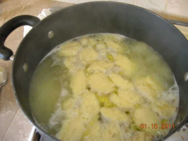 Cubrir la sopa y dejar que las bolas de masa hervida a hervir durante unos 10 minutos.
