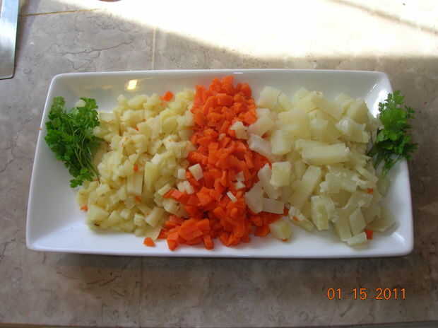 Después de agregar que cortar verduras y tal vez su carne si decide hacerlo, corte un algún perejil fresco por encima y servir caliente