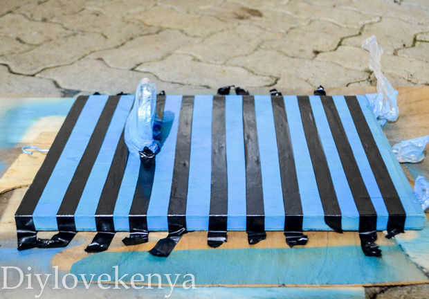 Después de que seca, cinta adhesiva encima de cualquier modo gusta entonces pinta de un color diferente en la parte superior.