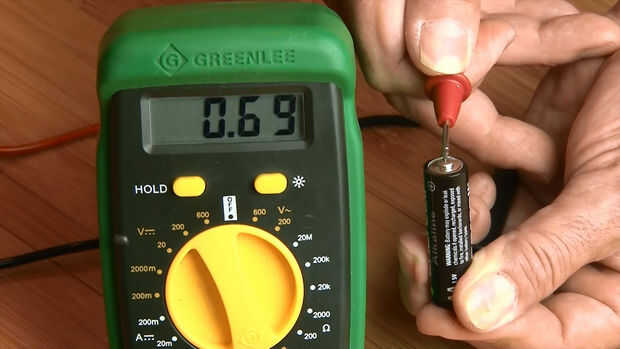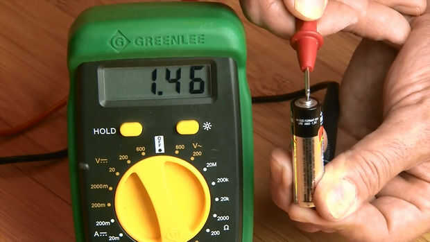 averiguar cuánta energía queda en las baterías con un multímetro. Aquí probar pilas AA pero puede probar AAA y otras pilas.Esto fue hecha usando el dispositivo multímetro en TechShop San José. Tienen una estación de trabajo electrónica con multímetro