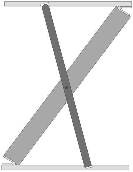 Estoy seguro de la ubicación y ángulo podría ser determinado por las matemáticas, pero adiviné: Gire el pasador hacia fuera para que la mesa esté nivelada y marque el punto con un lápiz. Taladros en ángulo de la espiga y los suficientemente profunda como hunden para que la espiga no se deslice cuando se aplica el peso un poco.