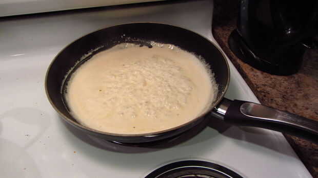 En una sartén mediana, agregar el ajo picado y cocine hasta que estén ligeramente dorados. Añadir más del envase pequeño de crema para batir y un poco de pimentón. Rocíe uniformemente en su queso parmesano y revolver. Cocinar la mezcla hacia abajo hasta que quede una salsa espesada de alfredo. (Si usted ya tiene algunos tocino cocido, romperlo en pequeños trozos y añadir a la mezcla).