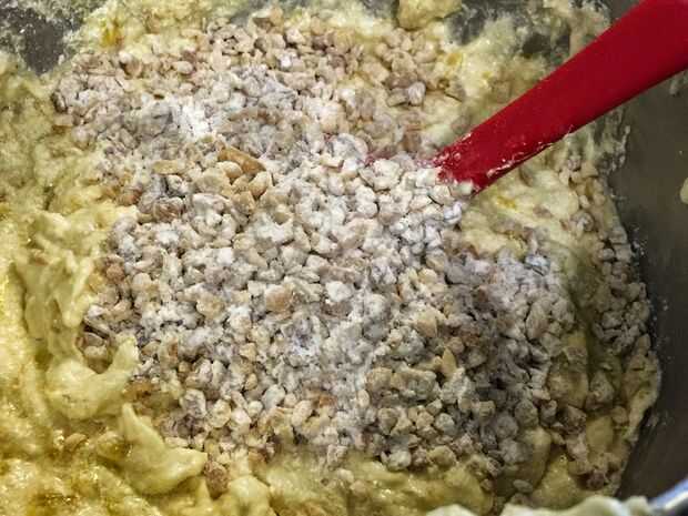 Incorpore suavemente las nueces recubierta de harina, si se utiliza.