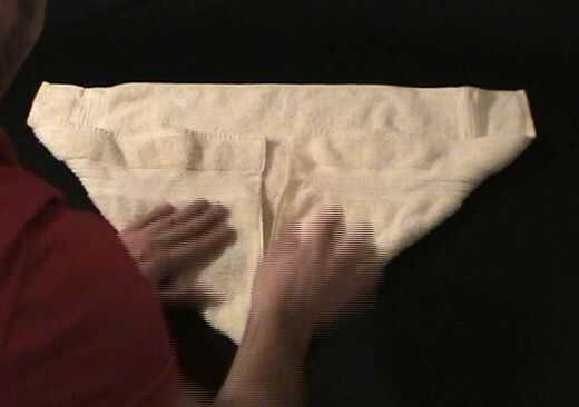 La toalla de mano, poner hacia abajo y luego agarra los dos bajar puntos y unirlos a la mitad...