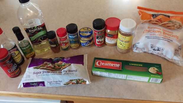 1 bolsa de congelados revuelva freír verduras (utilizado snap pea mezcla esta vez, pero prefieren brócoli salteado)