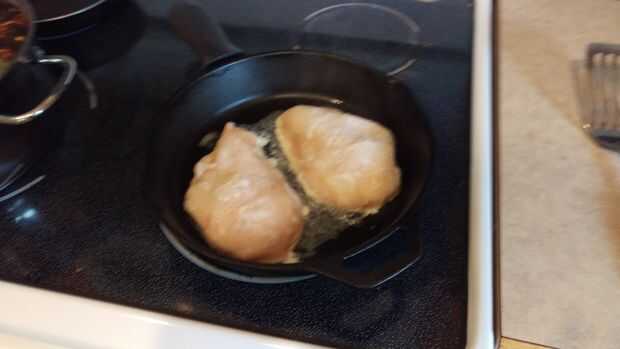 -Empieza por agregar un aceite de oliva y el pollo a la sartén. Mantener la temperatura bajo a medio (especialmente con una sartén de hierro fundido ya que retienen el calor bastante bien). Como usar pechugas de pollo congeladas, les dejaré descongelar en la cacerola durante un tiempo, les tirón y luego use mi espátula para cortarlas en trozos pequeños mientras está cocinando todavía.