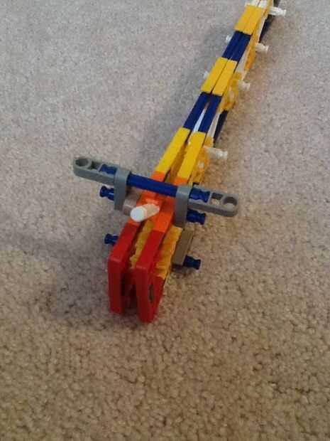 Snap ambos gris pieza a la barra azul, pasando por las tres partes de naranja.