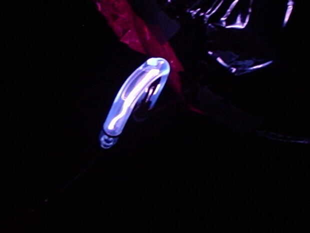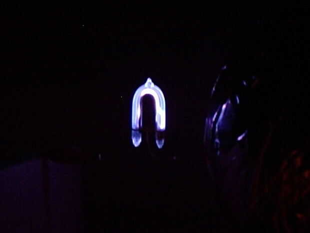 OK, traer la tierra del alambre muy cerca (pero sin tocar) el globo de plasma con hoja en él y obtendrá las arcas púrpura minúsculas pequeñita. Ahora ponemos un trozo de papel muy cerca del Arca y deben quemar o incluso prenderse fuego!!!!!! (Lo siento no hay foto de este pasa)