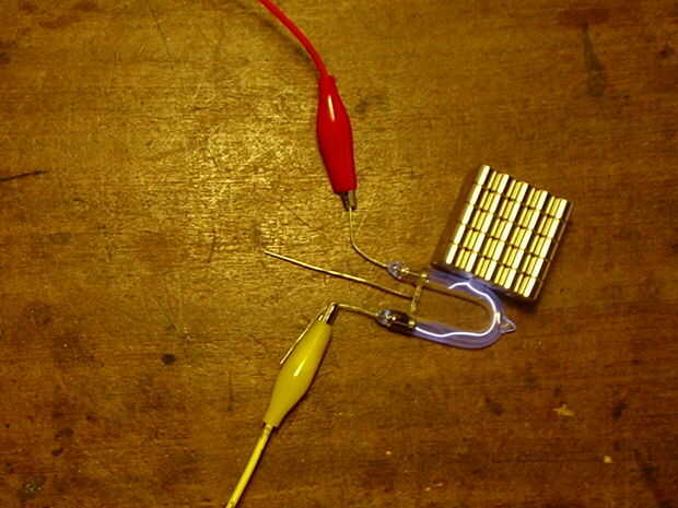 Ahora queria saber si a un arca de plasma dentro de un tubo de xenón hacer algo interesante si pongo imanes cerca de los tubos, así que voy a hacer ese experimento...