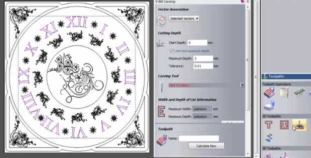 5. Seleccione todo el diseño floral que será en la capa superior del reloj y crear una trayectoria de herramienta de V-bit utilizando el