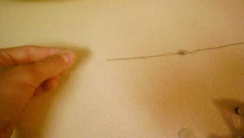 Tomar el hilo de nylon leñosas y en la punta, tienes que probar y tire suavemente hacia fuera de un pequeño filamento. (la cadena tiene puesto unos 100 strand todos juntos) Sacar uno debería ser bastante fácil.